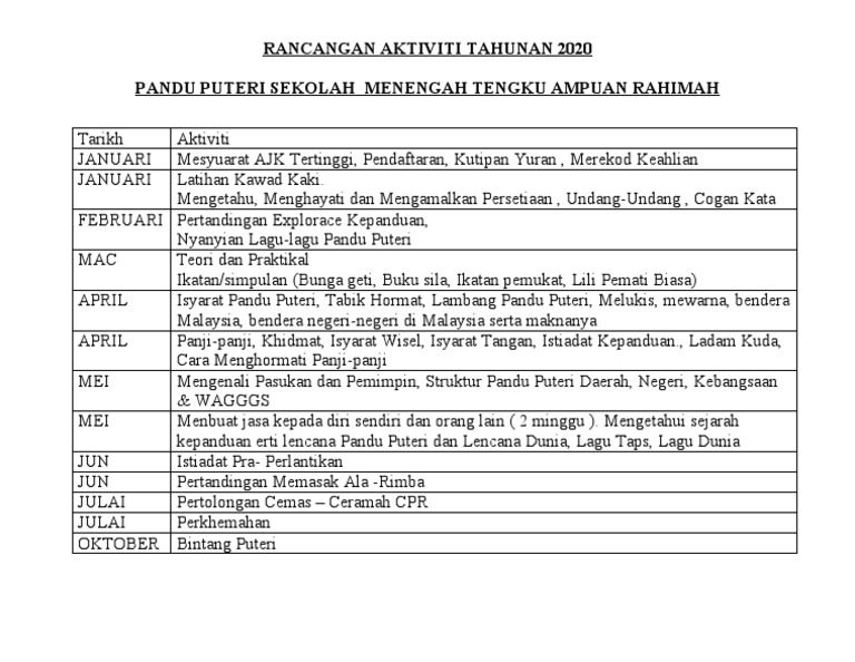 Kementerian pelajaran malaysia kandungan buku panduan pengurusan aktiviti kokurikulum sekolah menengah dan kandungan muka surat 32. Kini tunas puteri dikenali sebagai pandu puteri tunas. Pelbagai aktiviti telah diikuti antaranya, perkhemahan dalaman sekolah sahaja. Contoh perancangan ppim sekolah rendah. Sebagai 'tunas' mereka dapat mengetahui ilmu luar dan diaplikasikan dalam kehidupan seharian mereka.